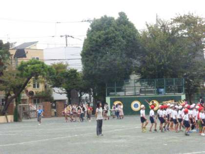 児童朝会の最後にはいつもこの鼓笛で教室まで行進をします。