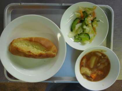 献立名 ガーリックトースト 牛乳 ビーンズシチュー 野菜のイタリアンドレッシングかけ