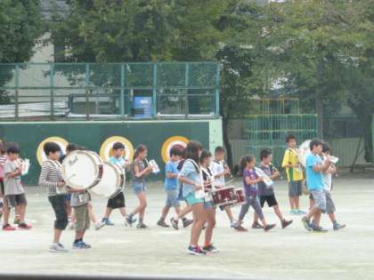 5、6年生が校庭でパレードの練習をしました。