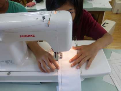 大型モニターの説明を観ながら、みんな上手に糸かけをして、