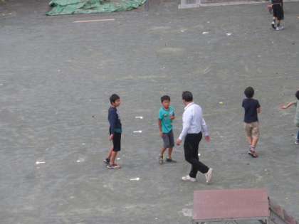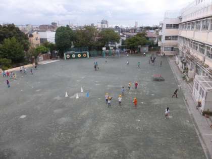 気持ちのいいお天気の下、校庭で元気に遊んでいる子がたくさんいました。