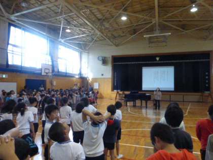 4年生は紙すき体験のため不在でしたが、5つの学年の子が集まって、