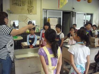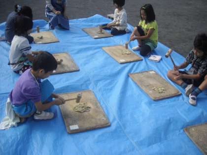 4年生が同じ杜の学び舎の山崎小学校へ、紙すき体験へ出かけました。