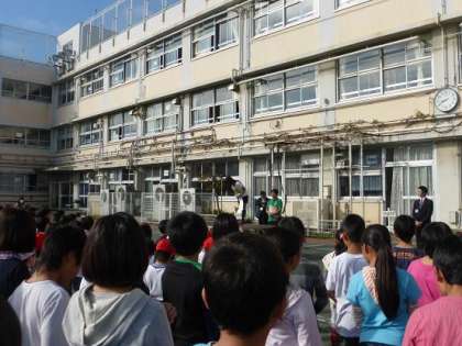 児童朝会の中で、今日から若小にやってきた教育実習生の紹介がありました。