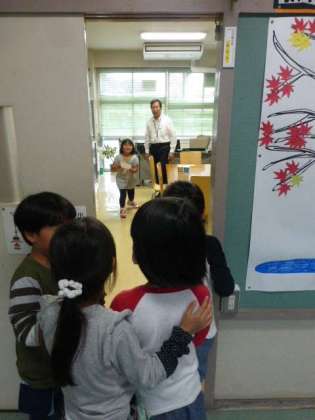 緊張の面持ちで校長室に入っていく友達をみんなで見守ります。