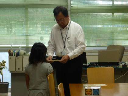 若小新名物「校長検定」に1年生がチャレンジしています。