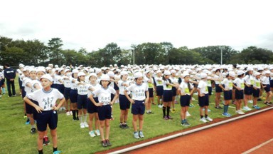 6年生は連合運動会に行ってきました。区内5000人近くいる6年生を3分割して、3日間行います。今日は初日です。運動会日和の天気の下、約1500人を超える6年生が集まり競い合いました。