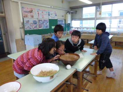 5年生が若小で栽培していたバケツ稲の脱穀が終わり、