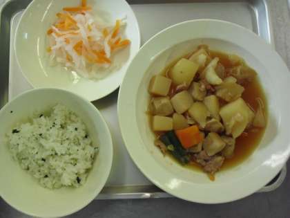 献立名 わかめとじゃこのご飯 牛乳 肉じゃがのうま煮 大根の甘酢かけ