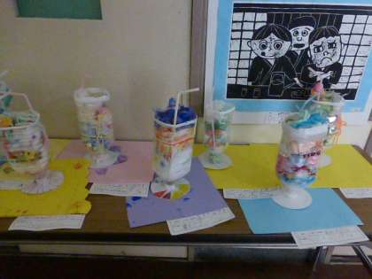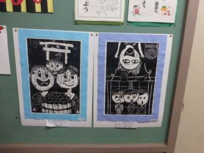 5年生の版画もコミカルな物語の世界を上手に表現しています。