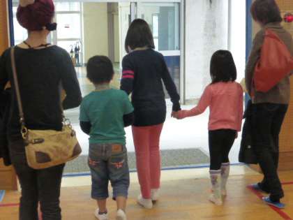 受付を済ませた子から順番に校内の各教室に出かけていきます。