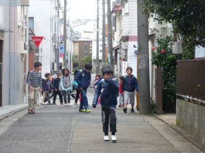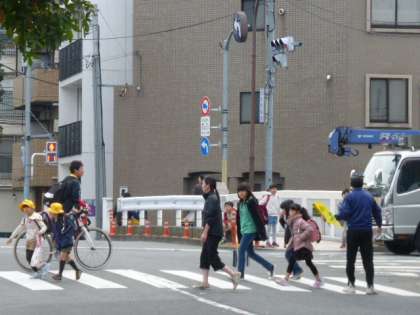 スクールゾーンではないため、先生や主事さんたちが総出で安全確保にあたります。