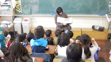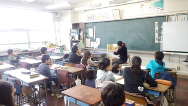 火曜日は、朝読書でスタートです。今日もたくさんの保護者ボランティアの皆さんに読み聞かせをしていただきました。どの教室をのぞいてもよく聞いています。係の子が欠席調べを届けに来たときに、絵本のストーリーをたずねると上手に話してくれます。