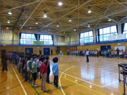 朝一番で声が出にくい時間帯でしたが、しっかりとした歌声が体育館中に響き渡っていました。