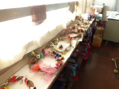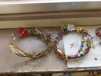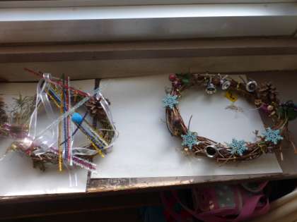 1年生が育てていたアサガオの茎でつくったリースが、