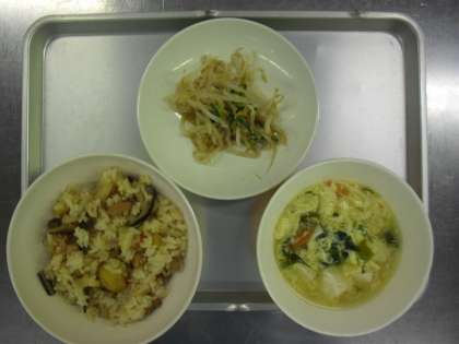 献立名 吹き寄せごはん 牛乳 かきたま汁 ごま酢あえ