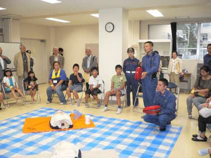 世田谷消防署の消防隊員の皆さまのご指導のもと「救命法」や「AED」の