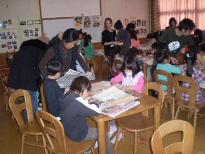 はじめに箸の文化についての説明を聞いた後、さっそくつくりはじめました。