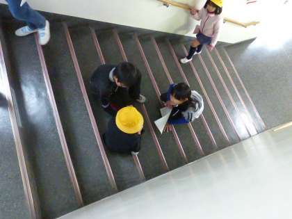 休み時間の後、6年生と一緒に階段を上っていた1年生が転んでしまったようです。