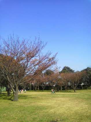 暖かい公園で昼食をいただきます。