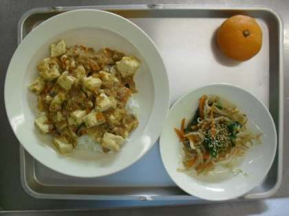 献立名 麻婆豆腐丼 牛乳 ナムル みかん