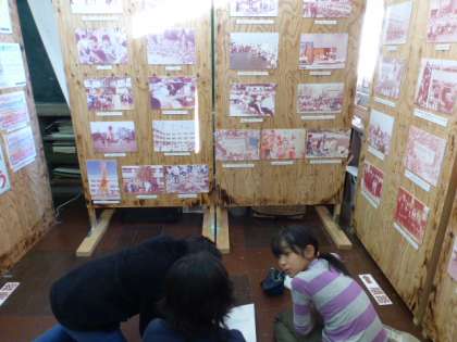 開校100周年記念行事の写真を見ながら感心している子もいました。