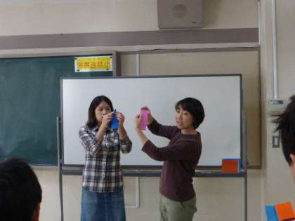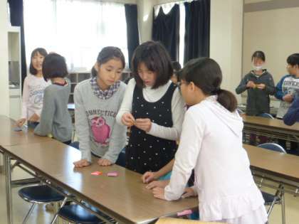 に備えて、5年生がPTA役員の皆様から折り紙めんこの折り方を教わりました。