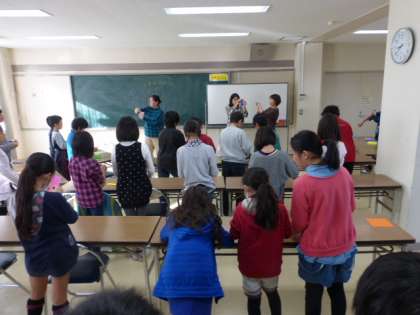 低学年生に教えるのを楽しみにしている5年生でした。