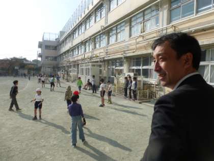 元気に仲良く遊ぶ様子を副校長先生が嬉しそうに見つめていました。
