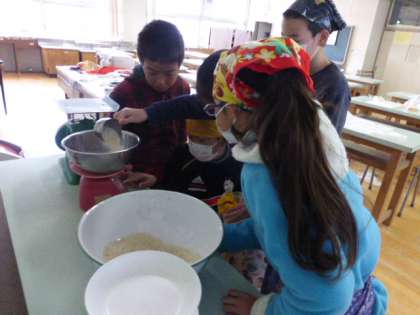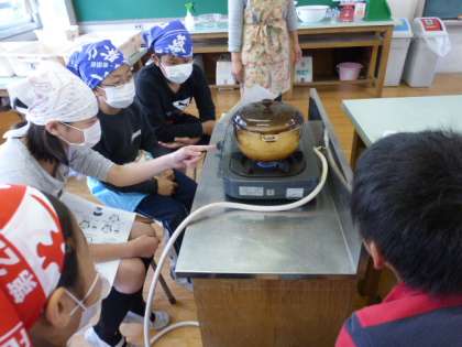 5年生が家庭科の時間にご飯を炊く活動に取り組みました。
