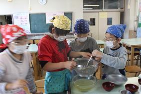 出汁が上手にとれたので、家庭科室にはかつおの良い香りが漂いました。