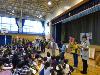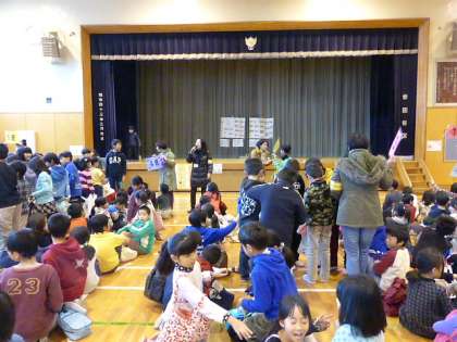 今年一番の冷え込みとなりましたが、全校児童が集まった体育館は熱気が充満しています!