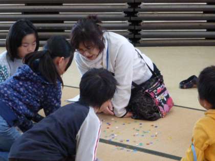 会長はおはじきコーナーを担当して、熱心におはじきを教えていました。