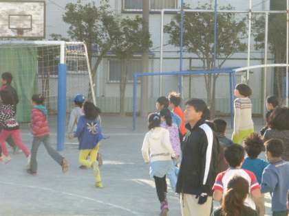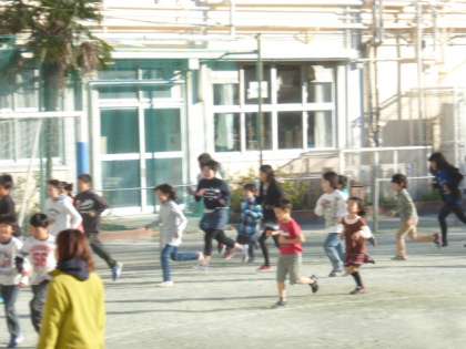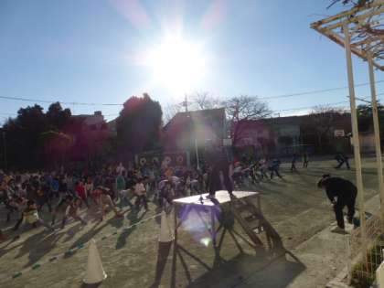 体育朝会で持久走
