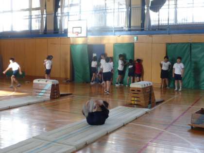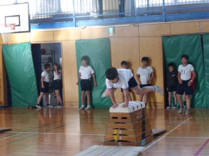 久しぶりの跳び箱と、今まで練習を重ねてきた技をコラボさせ、