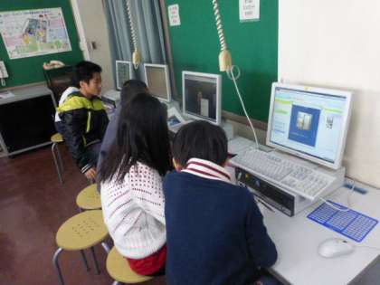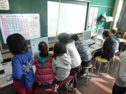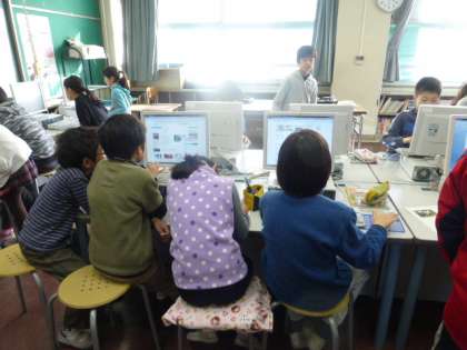 4年生と6年生が、調べ学習のためにパソコン室に来ていました。