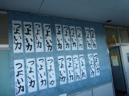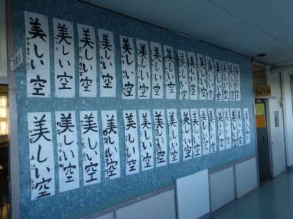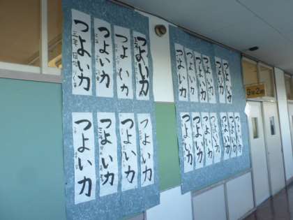 3、4年生の教室前には、立派な書き初め作品が掲示されています。