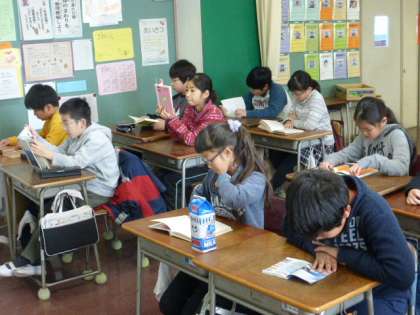 それぞれの教室では、みな一様に静かな読書が行われていました。