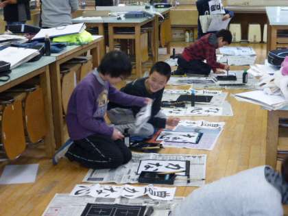 今までの練習の成果を発揮し、力強い「豊かな心」が書き上がりました。