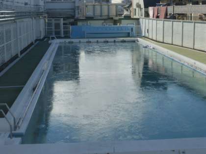 階段を上っている1、2年生の子たちも興味津々の様子で見ていました。