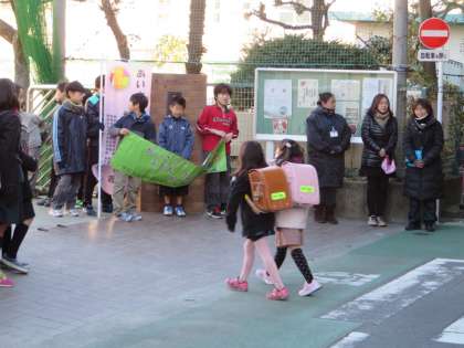 学び舎合同のあいさつ運動は若小正門でも行われました。