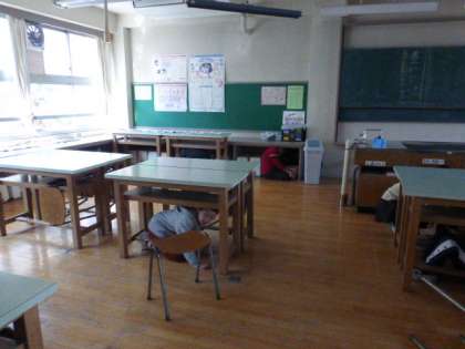 出張掃除中の子たちも机の下にかくれます。