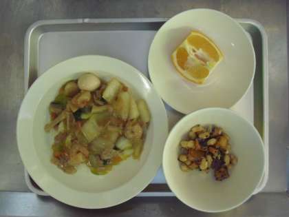 献立名 中華丼 牛乳 お豆かりんとう いよかん