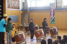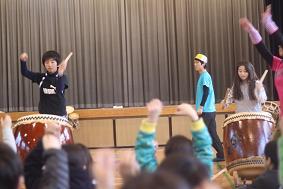 今回は「たまっ子太鼓」の方たちが来校してくれて、