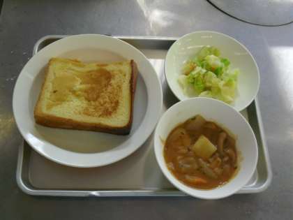 献立名 フレンチトースト 牛乳 ビーンズシチュー キャベツサラダ