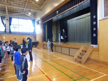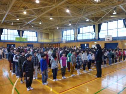 校長先生もお話もしっかり聞ける、若小の朝会でした。