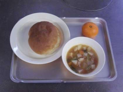 献立名 セルフフィッシュサンド 牛乳 ミネストラスープ みかん