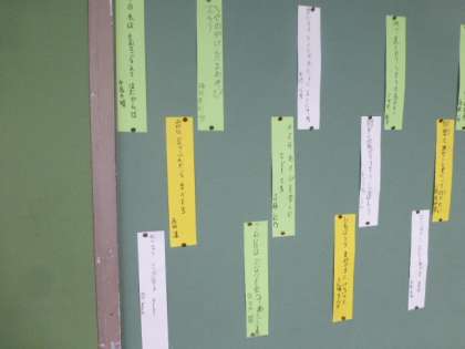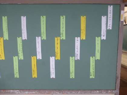 3年生の教室前にはかわいらしい短冊に書かれた俳句が掲示されています。