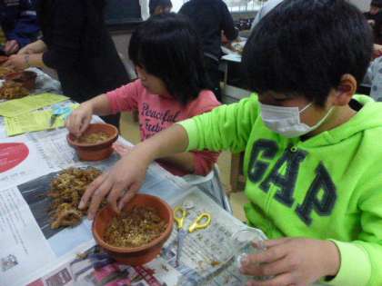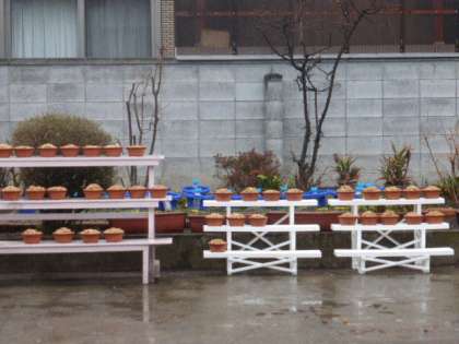 みんないとおしそうに球根を植えて、さっそく鉢を外に並べました。
