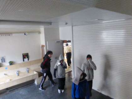 防火扉も上手に通り、校庭に出てもとても静かです。